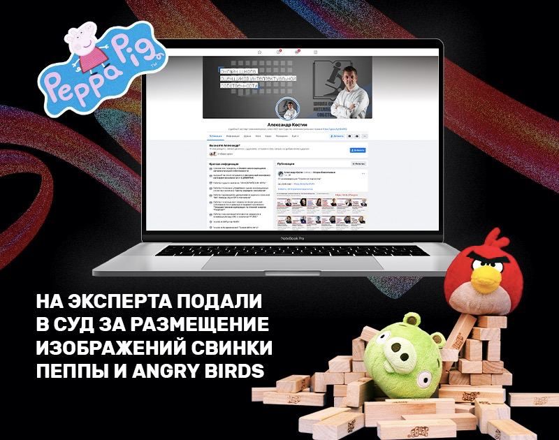 На российского судебного эксперта Александра Костина подали в суд финская Rovio Entertainment Oyj и британская Entertainment One UK Ltd за использование им на страницах своей группы в социальных сетях Facebook и «ВКонтакте» изображений свинки Пеппы и Angry Birds.