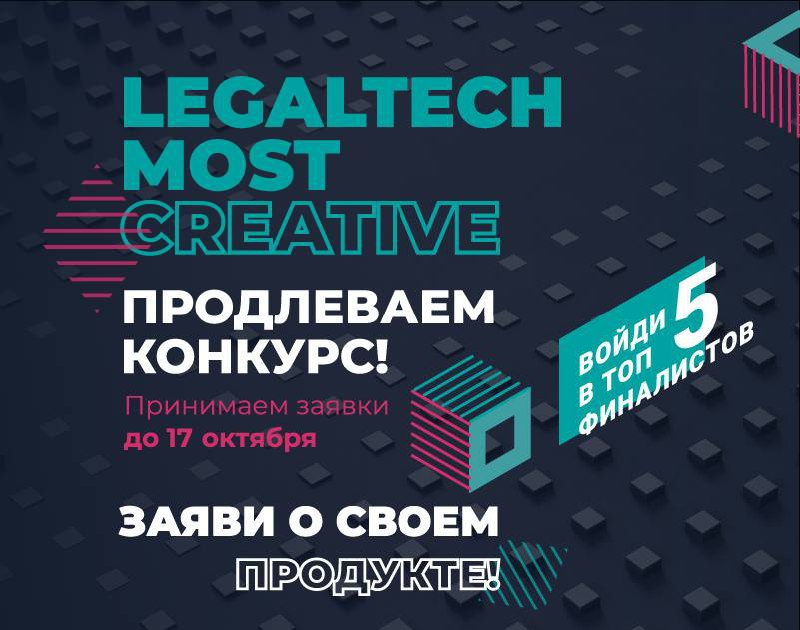 Прием заявок на LegalTech Most Creative — конкурс на самую инновационную и креативную модель сервиса или продукта в области LegalTech — продлен до 17 октября!