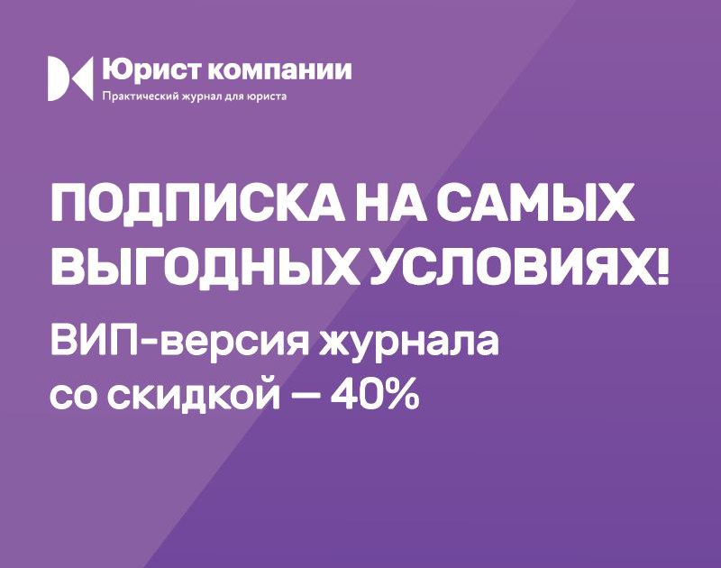 «Юрист компании» – это помощь в работе юристу 24/7! Специально для подписчиков IPQuorum в ноябре действует акция – оформить подписку на VIP-версию журнала можно со скидкой 40%. Оставьте заявку, чтобы получить подписку на самых выгодных условиях! Больше подробностей – по ссылке: https://clck.ru/YaQ62