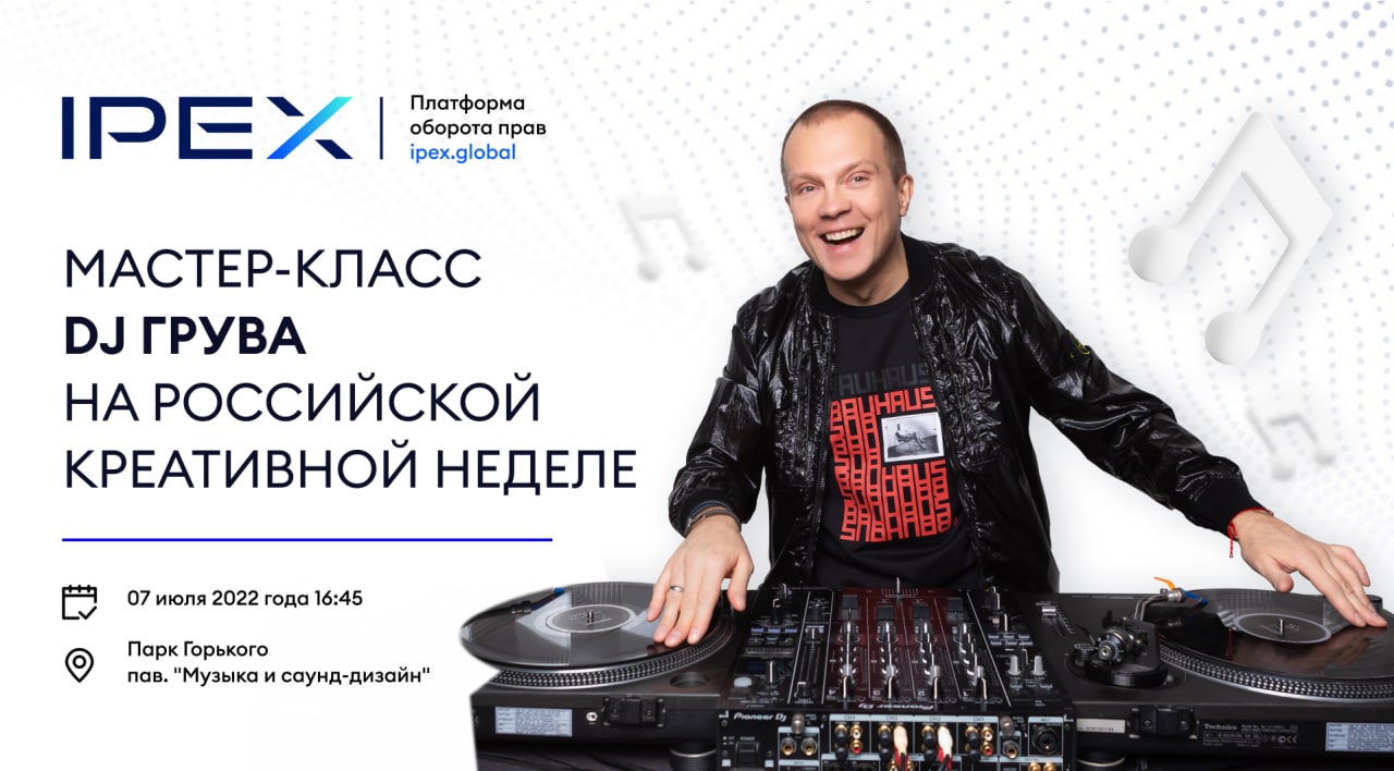 DJ Groove проведет уникальный мастер-класс по саундпродакшну и написанию музыки, создаст оригинальный трек к рекламному ролику платформы IPEX, расскажет о тонкостях работы со звуком в специальных музыкальных программах.