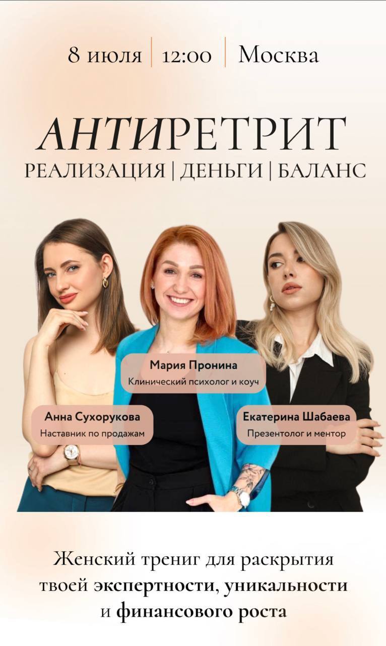 Наши коллеги из «Профсоюза инноваторов» приглашают на женский тренинг, который пройдет в центре Москвы уже 8 июля с 12:00 до 20:00. Принять участие могут девушки-предприниматели и руководительницы, фрилансеры и сотрудницы компаний.