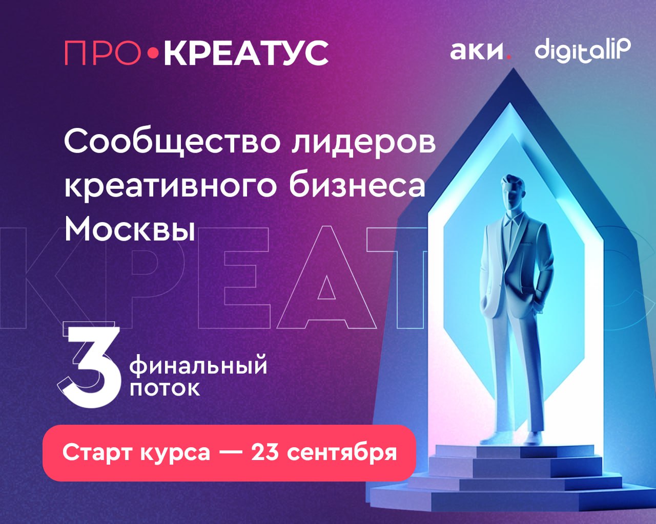 Агентство креативных индустрий и Научно-образовательный центр Digital IP запускают набор на финальный поток бесплатного образовательного курса «ПРО.Креатус».