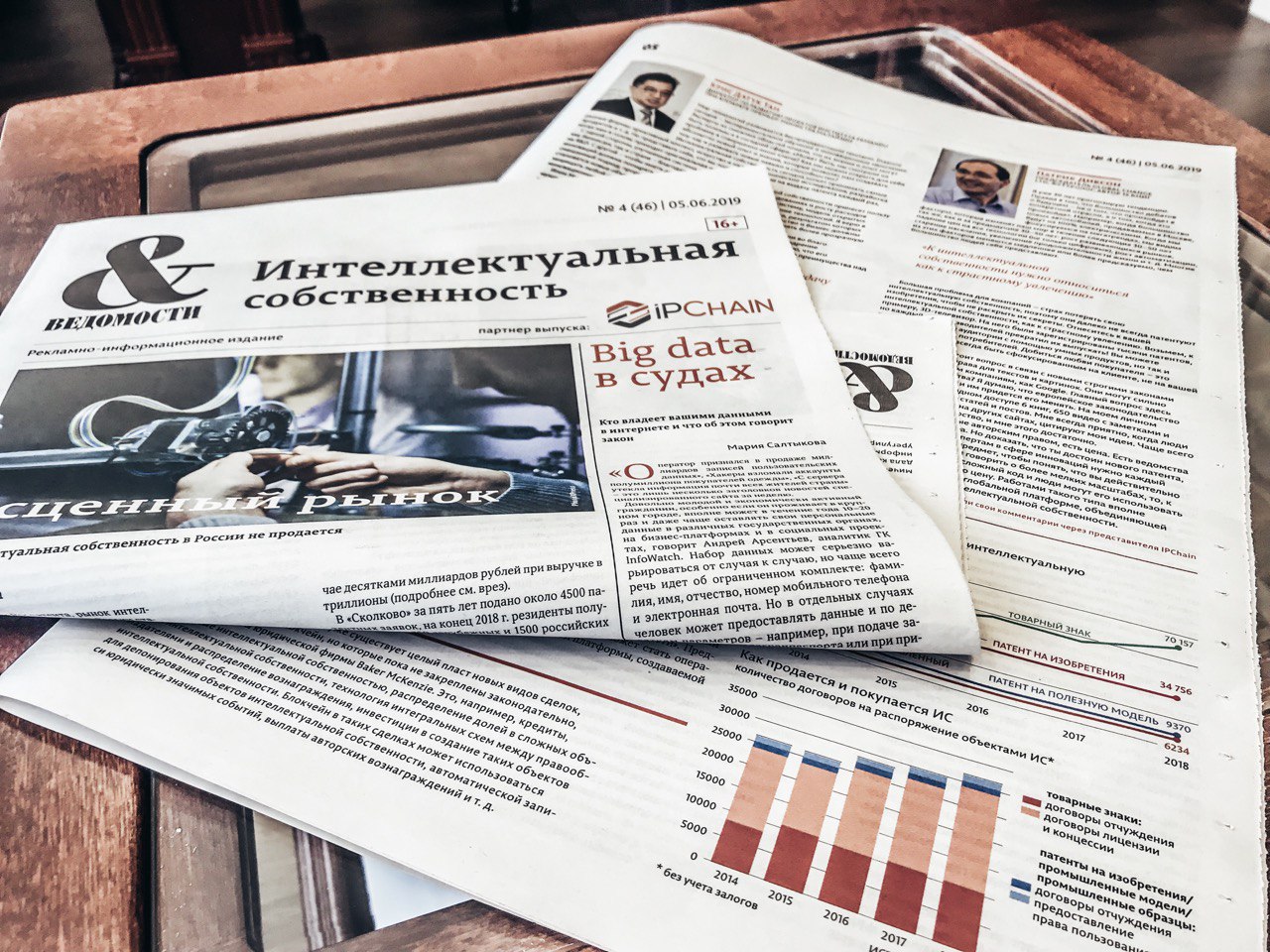 К открытию Петербургского международного экономического форума газета «Ведомости» в партнерстве с Ассоциацией IPChain выпустила специальное приложение «Интеллектуальная собственность», посвященное основным трендам рынка интеллектуальной собственности в России и мире.