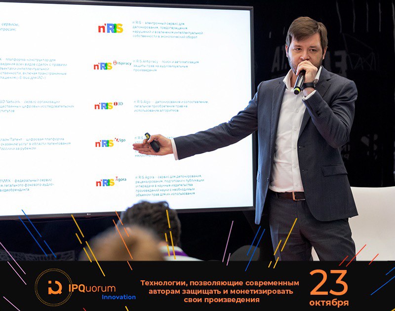 Коммерческий директор n’RIS Григорий Туринцев выступил на площадке IPQuorum.Innovation в рамках международного форума «Открытые инновации» с рассказом о технологиях, позволяющих современным авторам защищать и монетизировать свои произведения.