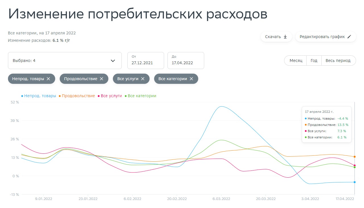 Все категории расходов — 6.1% г/г;