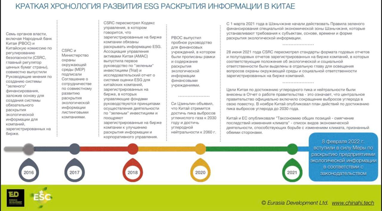 Краткая хронология развития ESG в Китае представлена на слайде.