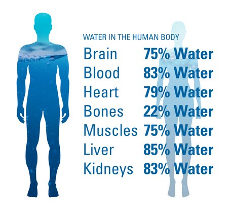 Chunki o'rta yoshdagi insonning tanasini 55 - 60% qismi suvdan tashkil qilar ekan. Misol uchun