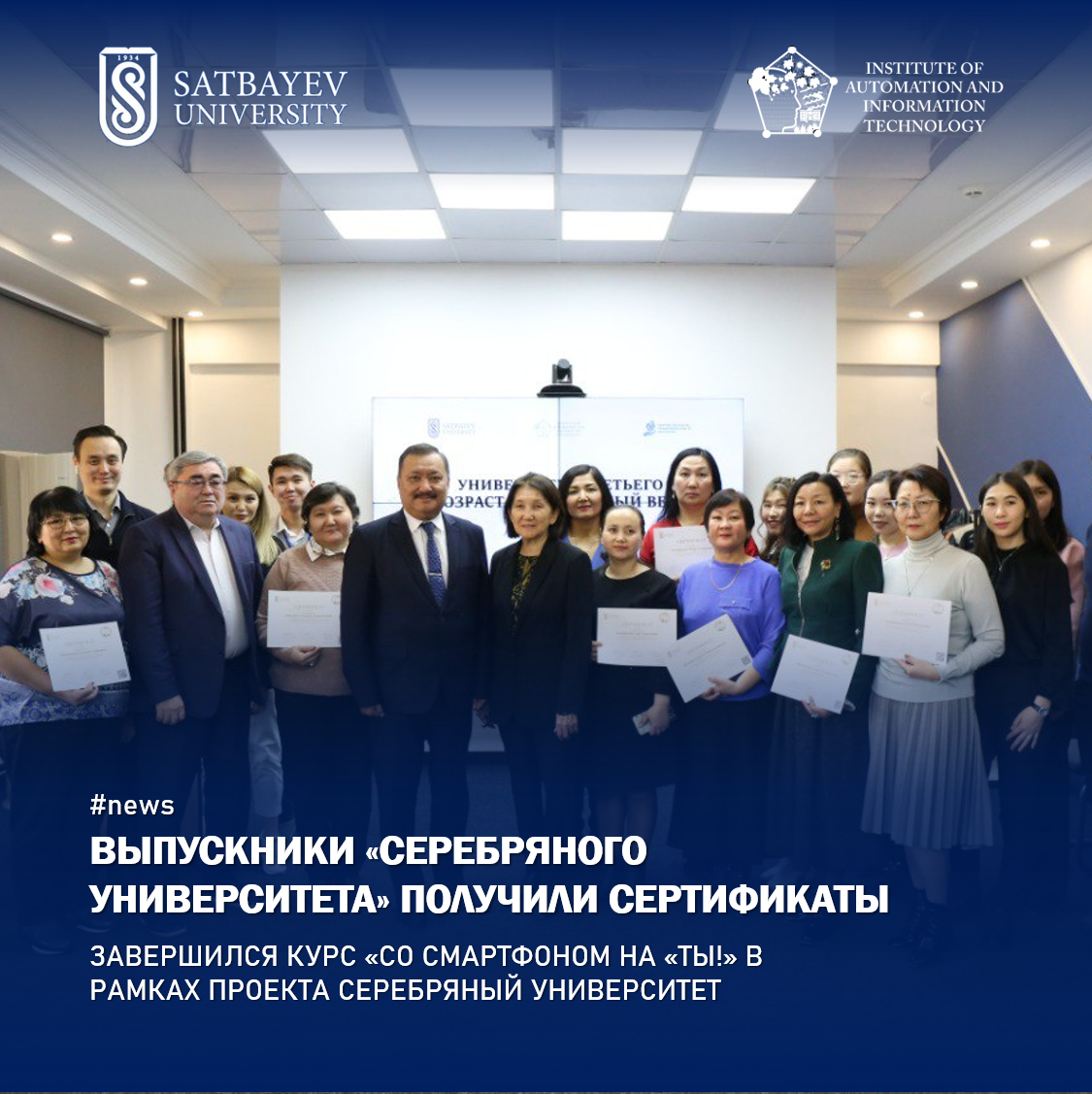 1 ноября в Satbayev University состоялось торжественное вручение сертификатов выпускникам «Серебряного Университета». Участники курса «Со смартфоном на «Ты!», который стартовал 11 октября, успешно овладели навыками онлайн приобретения билетов на транспорт, мероприятия и полным пакетом управления и настройки приложений.