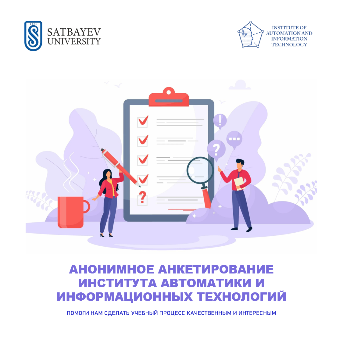 Құрметті Автоматтандыру және ақпараттық технологиялар институтының студенті, біз тағы да оқу үдерісіне қанағаттанушылық туралы анонимді сауалнаманы бастаймыз! Оқу үдерісін сапалы әрі қызықты өткізуге көмектесіңіз. Сіздің біліміңіздің сапасы жауаптарыңызға байланысты. Сауалнама толығымен анонимді. Сілтемені орындаңыз: https://forms.office.com/r/EEuiCYRpmc