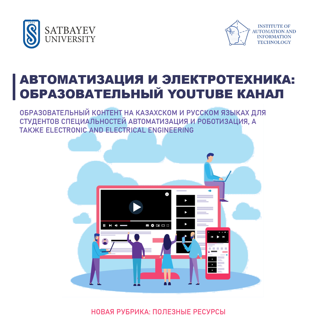 Контент снимается на двух языках: на казахском и на русском. Канал будет полезен студентам образовательных программ - «Автоматизация и роботизация», «Математическое и компьютерное моделирование», а также «Electronic and Electrical Engineering».
