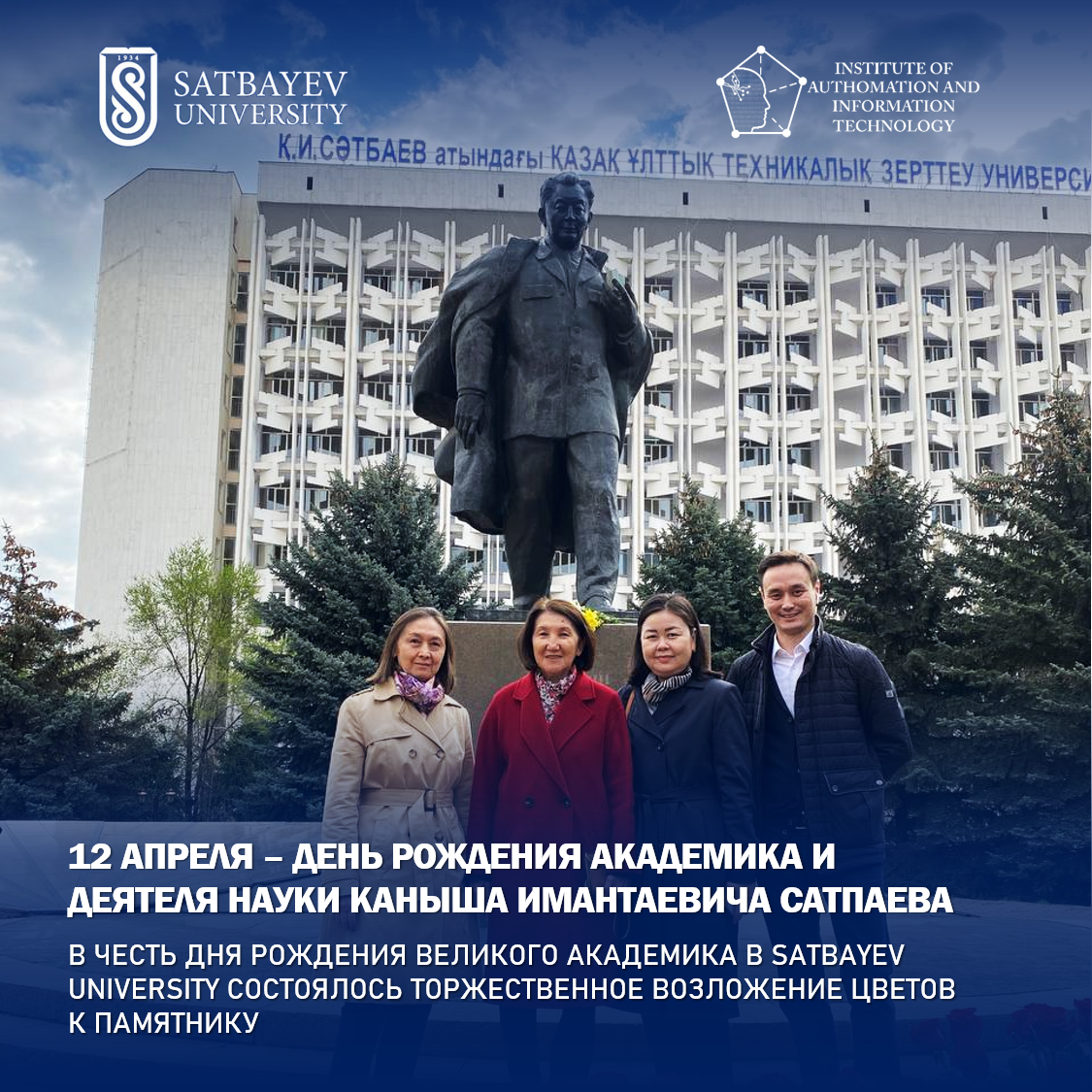 Сегодня 12 апреля день рождения академика и великого деятеля науки Каныша Имантаевича Сатпаева. В честь этого события в Satbayev University состоялось торжественное возложение цветов к памятнику.