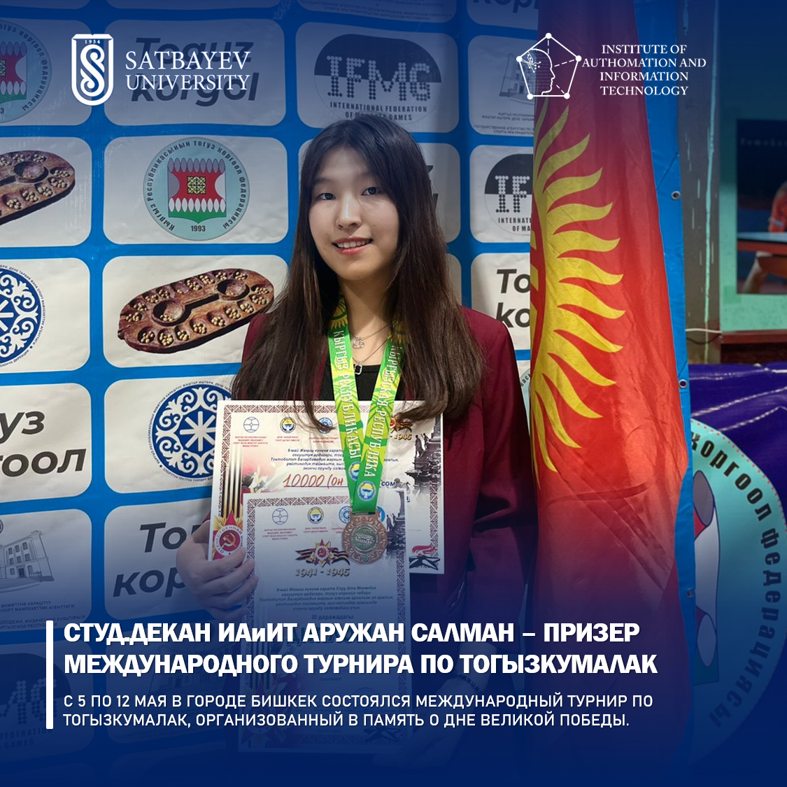 🥳Поздравляем: Студдекан ИАиИТ Аружан Салман - призер международного турнира по Тогызкумалак!🥳
