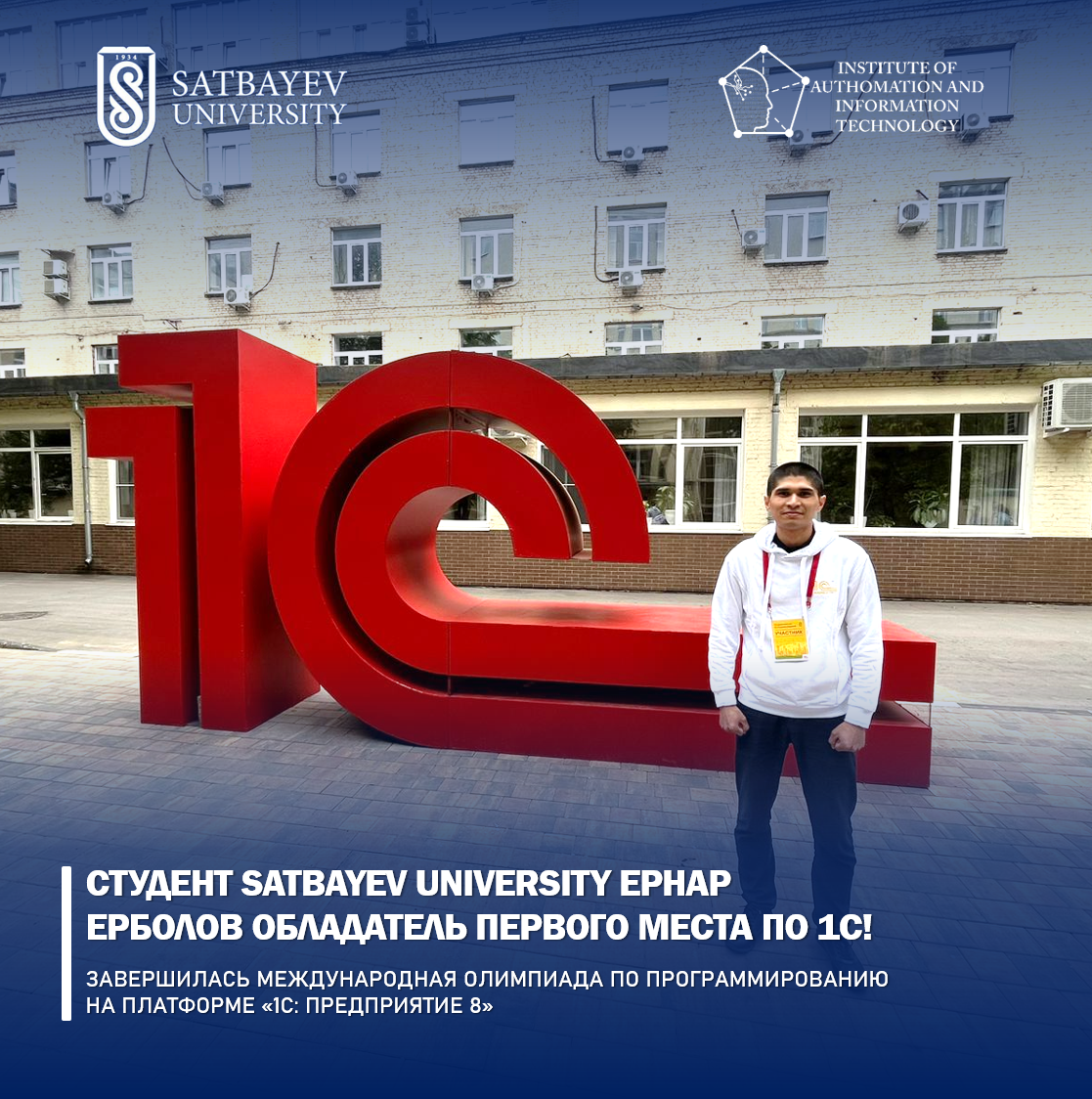 Сәтбаев Университетінің 4 курс студенті - Ернар Ерболов «1С Кәсіпорын 8» платформасында бағдарламалау бойынша халықаралық олимпиадада 1 орын алды. Ернар Автоматика және ақпараттық технологиялар институты және Қазақстандағы 1С өкілдігімен бірлесіп ұйымдастырған «1С: Бағдарламашы. студенттерді оқыту және жұмысқа орналастыру» бағдарламасына қатысты.