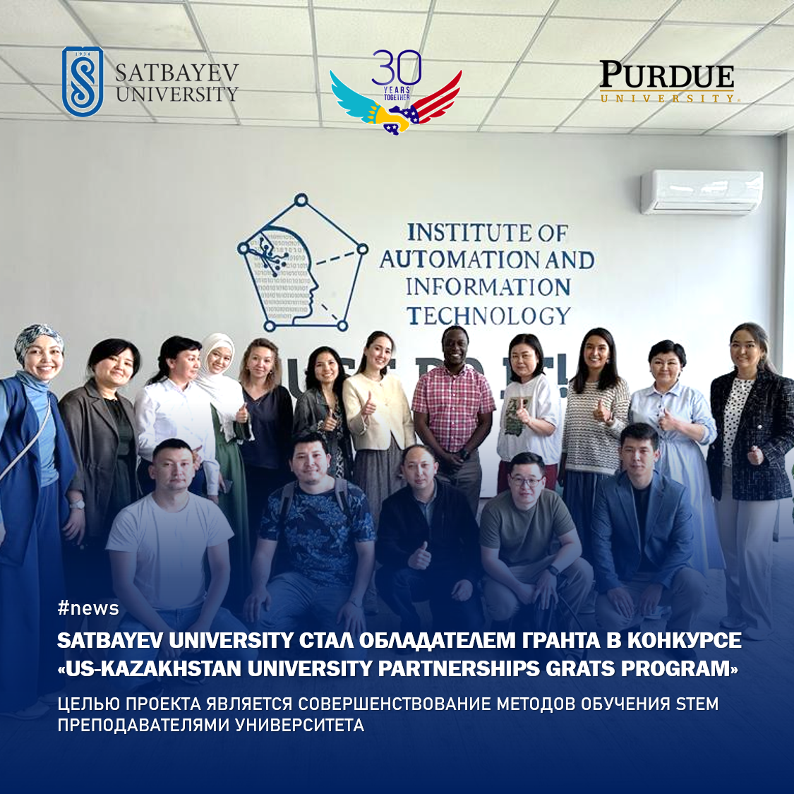 Satbayev University совместно с Zhubanov University при партнерстве Purdue University стал победителем гранта в конкурсе грантовой программы "U.S.-Kazakhstan University Partnerships Grants Program".
