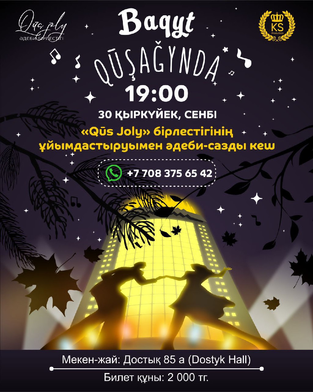 Не упустите этот шанс на незабываемый вечер в прекрасной компании "Baqyt Qūşağynda". 🌃