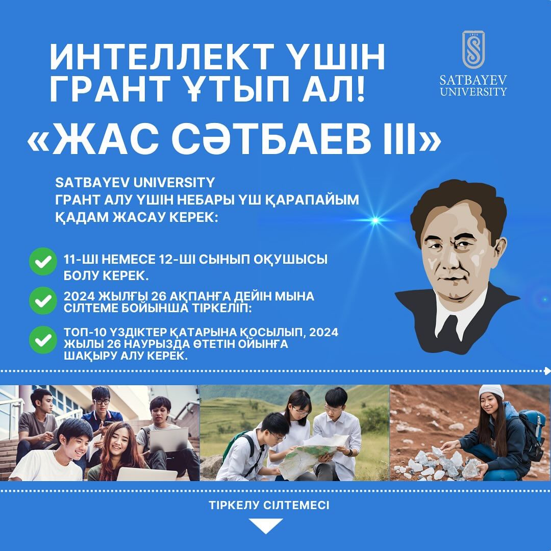 🆕 СӘТБАЕВ УНИВЕРСИТЕТІ «ЖАС СӘТБАЕВ ІІІ» ИНТЕЛЛЕКТУАЛДЫ ОЙЫНЫНА ҚАТЫСУҒА МЕКТЕП ОҚУШЫЛАРЫН ШАҚЫРАДЫ