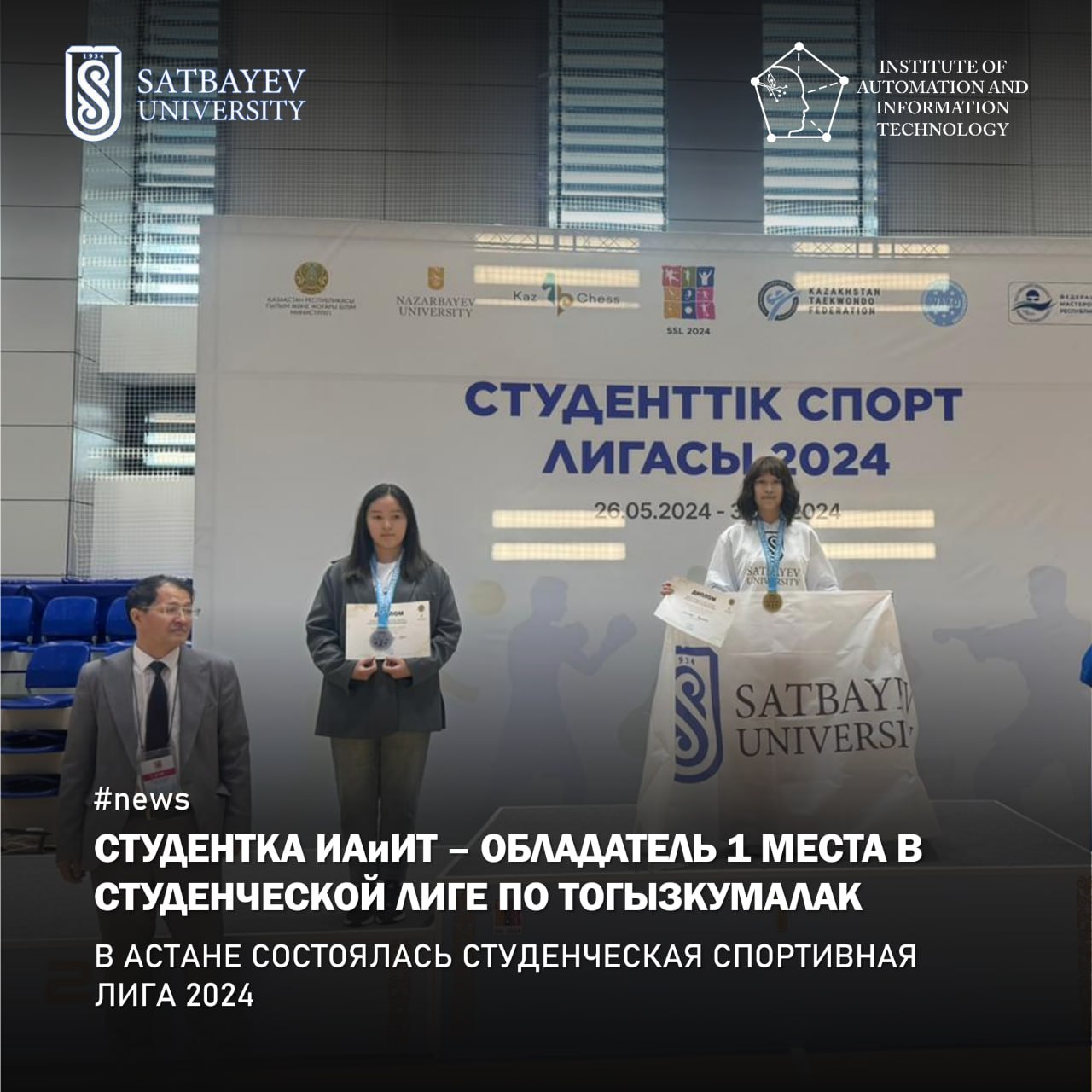 С 26 по 31 мая в городе Астана состоялась Студенческая спортивная лига. В личном зачете по Тогызкумалак 1 место одержала студентка ИАиИТ Аружан Салман.