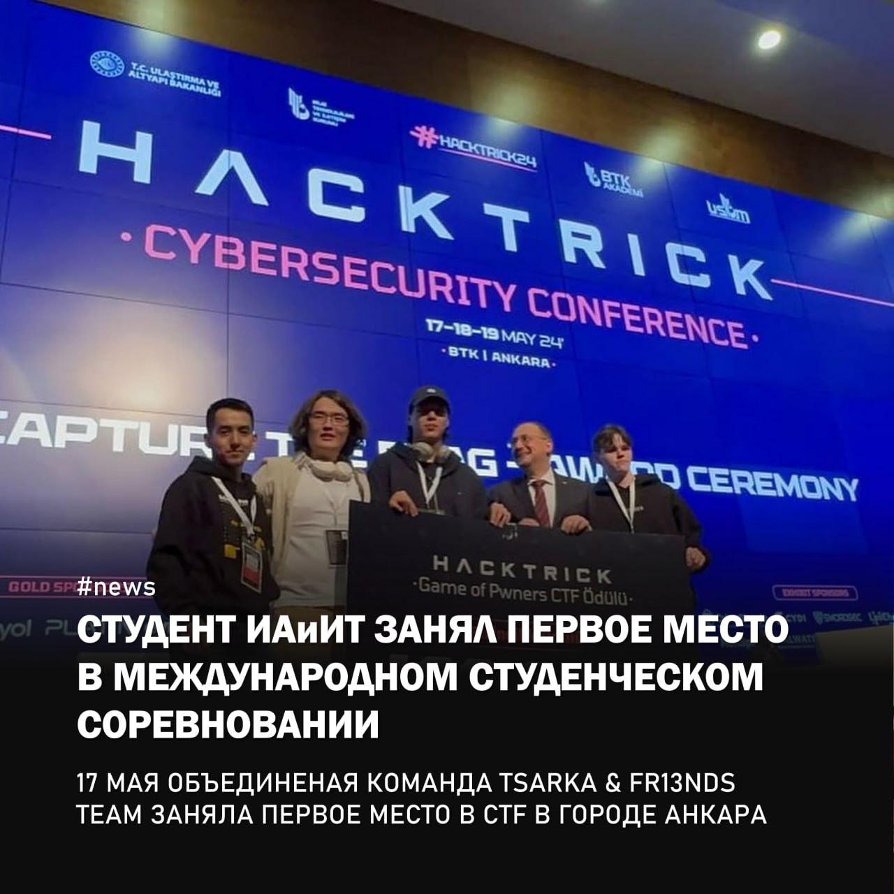 17 мая команда заняла 1 место на международном студенческом CTF соревновании среди 26 хакерских команд на конференции HackTrick в г. Анкара. В состав объединенной команды вошел студент ИАиИТ Расим Юмашев.