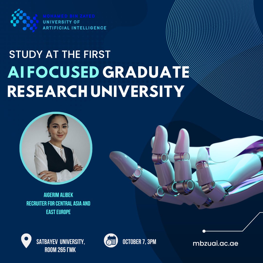 Our guest speaker,Aigerim Alibek, MBZUAI Recruiter, will guide you through the innovative graduate programs tailored to meet the demands of the AI market. Discover how MBZUAI can empower you to succeed in your chosen career and address some of today's most pressing challenges. 🌍