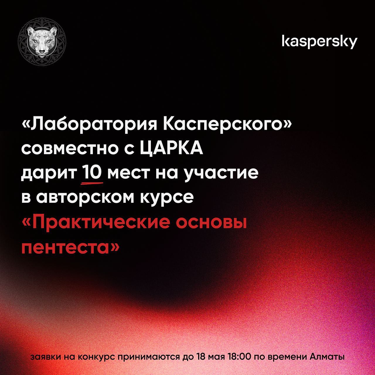 Именно поэтому «Лаборатория Касперского» совместно с ЦАРКА дарит 10 мест студентам на участие в авторском курсе «Практические основы пентеста» 🎁