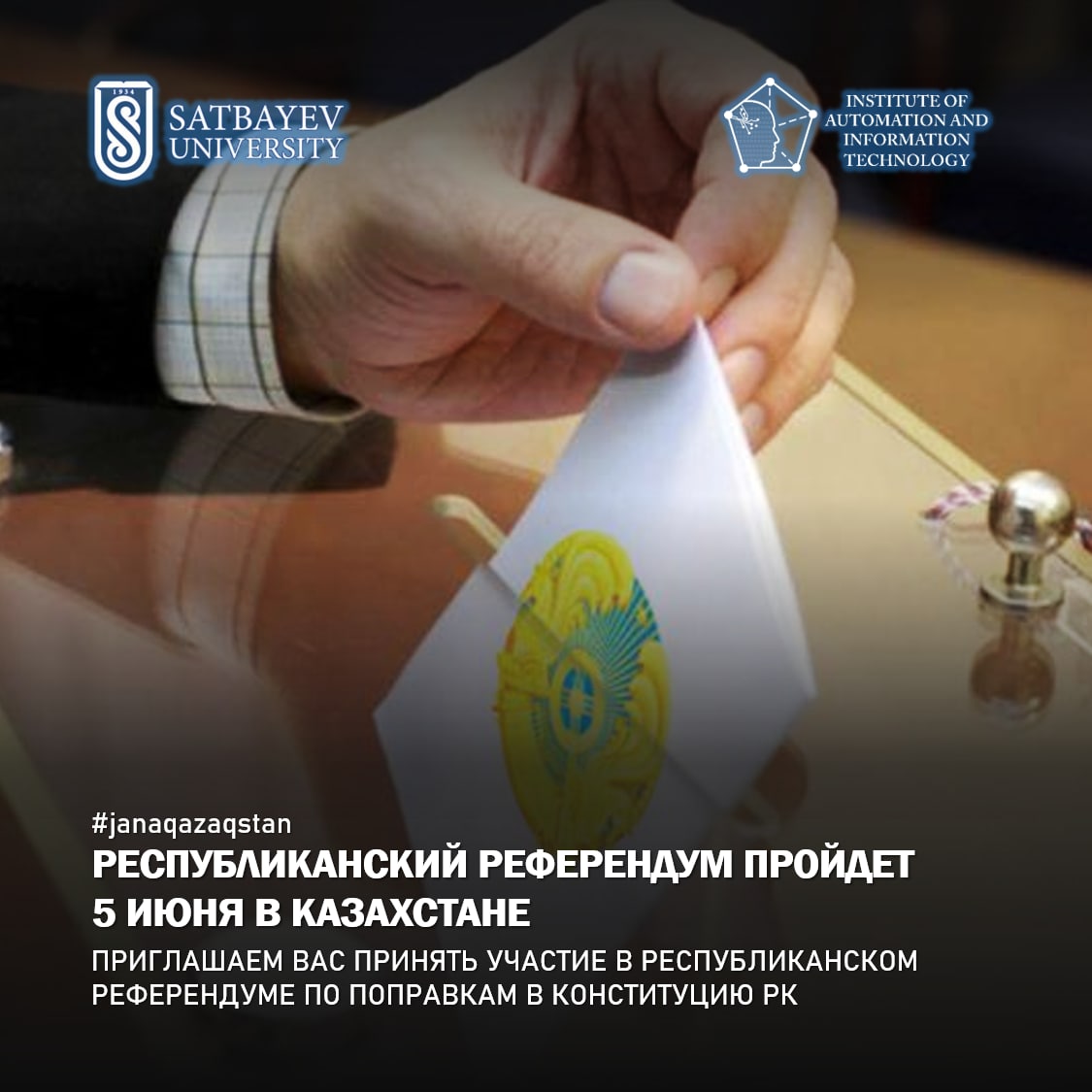 Институт Автоматики и Информационных технологий️ pinned «Республиканский референдум в Казахстане пройдет 5 июня На республиканский референдум будут внесены проект Закона Республики Казахстан «О внесении изменений и дополнений в Конституцию Республики Казахстан» со следующей формулировкой вопроса: «Принимаете ли…»