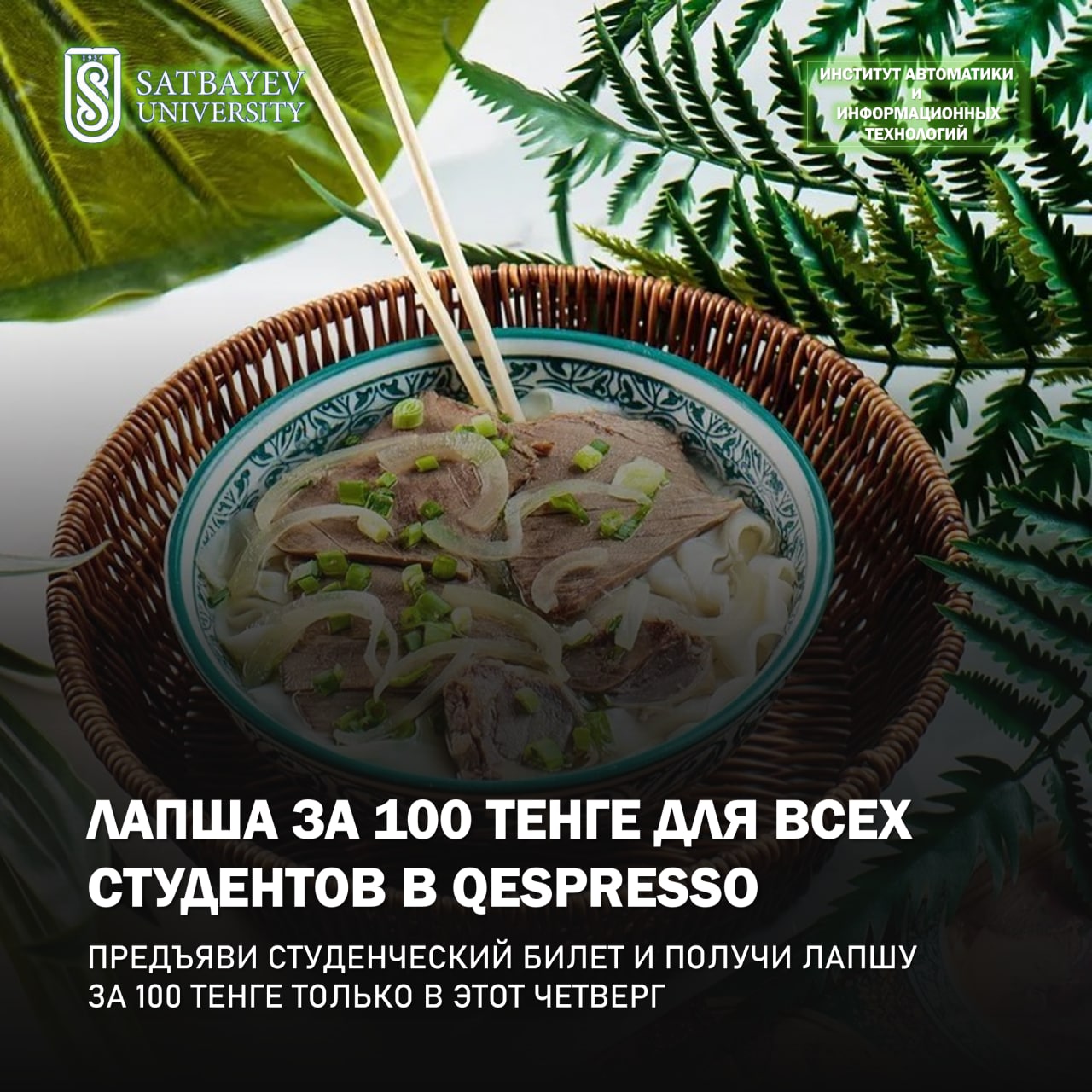 Напоминаем Вам об акции для студентов, которая действует сегодня. Лапша за 100 тнг😱
