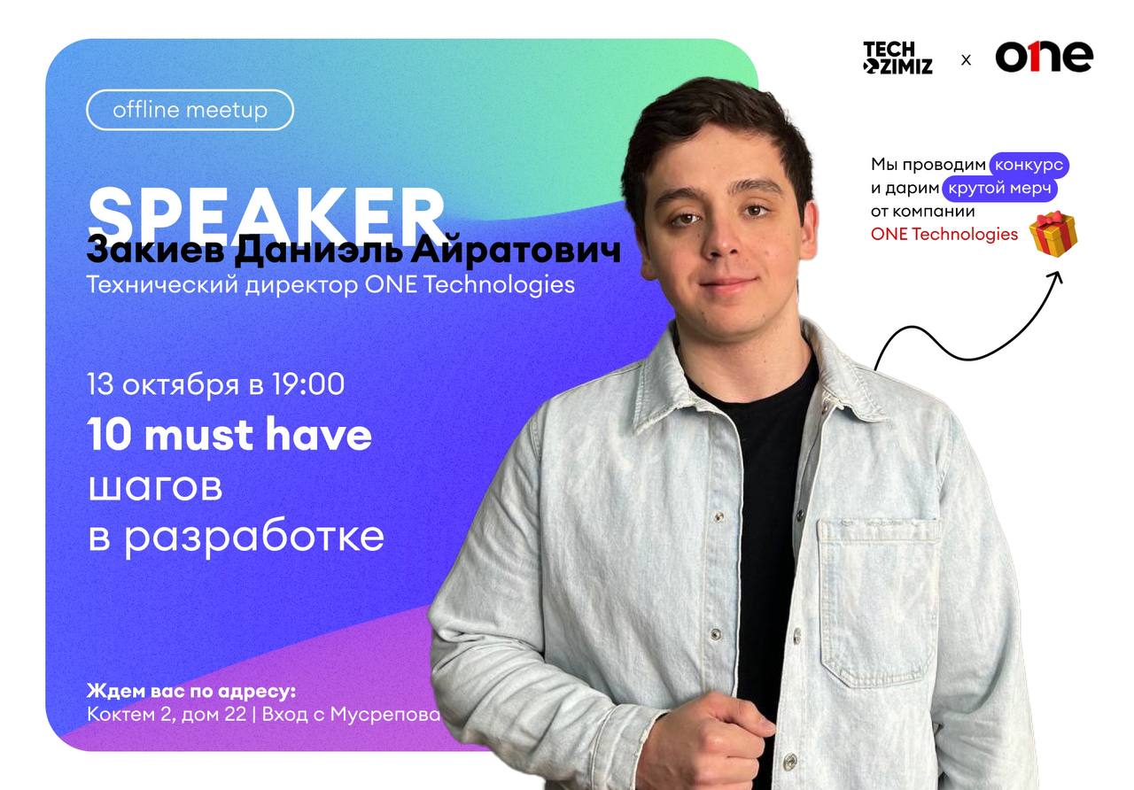 📌 13 октября в 19:00 выступит Даниэль Закиев, технический директор компании ONE Technologies, с темой 10 must have шагов в разработке.