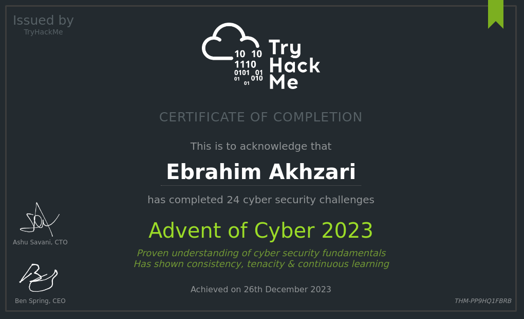 چالش نهایی سال 2023 سایت tryhackme که چند بار راجع بهش تو کانال صحبت کردم، تمام شد