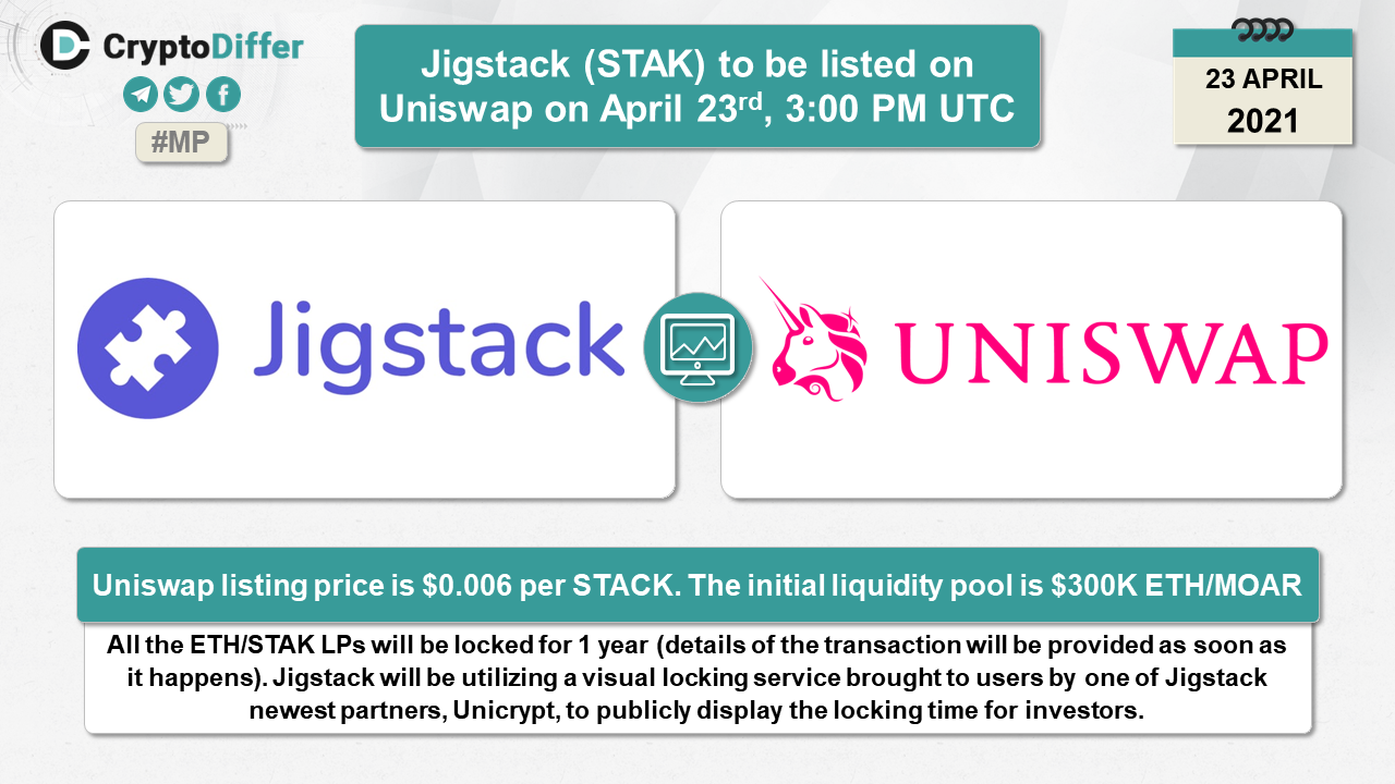 Jigstack (STAK) to be listed on Uniswap on April 23rd, 3:00 PM UTC