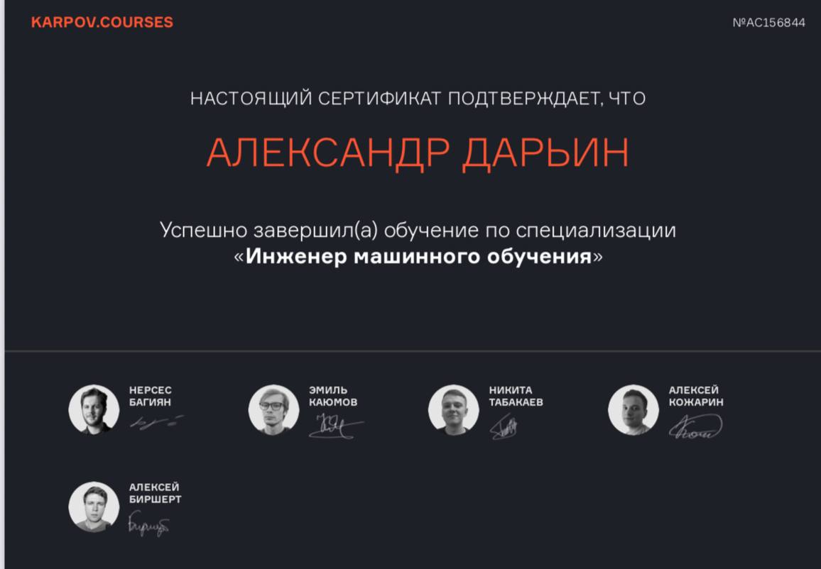 Повысил я свою экспертность еще на один уровень, теперь я «Инженер по машинному обучению», сокращенно ML.