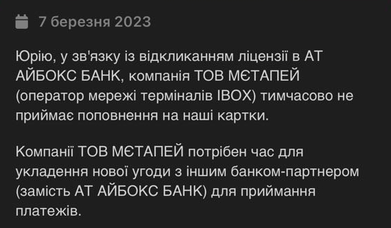 Вчора платіжні термінали IBOX припинили роботу через відкликання ліцензії та ліквідацію Айбокс Банку.