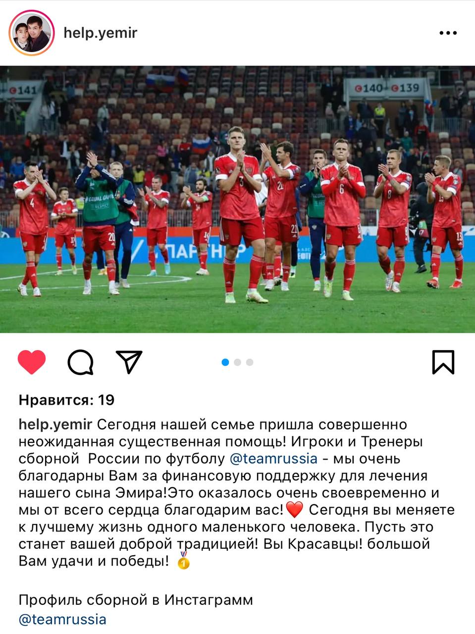Пару часов назад в инсте появилось вот это сообщение (на фото). Оказалось, что игроки и тренерский штаб сборной России узнали о беде парня из Казани и моментально решили помочь ему.