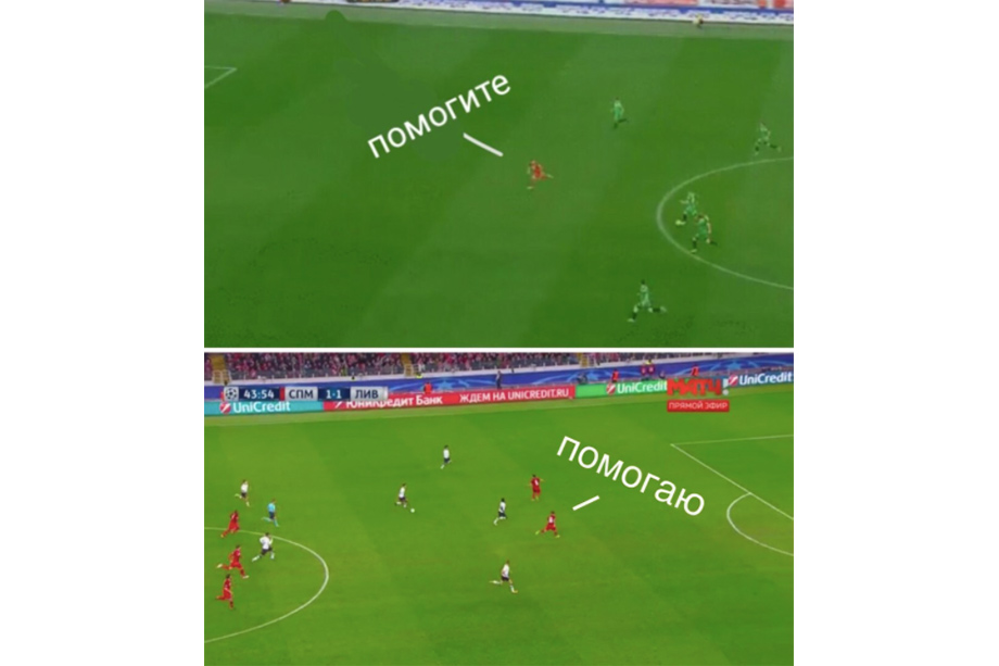 • Динамо в 1-м тайме с ЦСКА играет, как решето. Допускает моменты из серии «памагите — памагаю». Проигрывает со счетом 0:1. После перерыва укрепляет центр с флангом дисциплинированными Фоминым и Маричалем и отыгрывается.