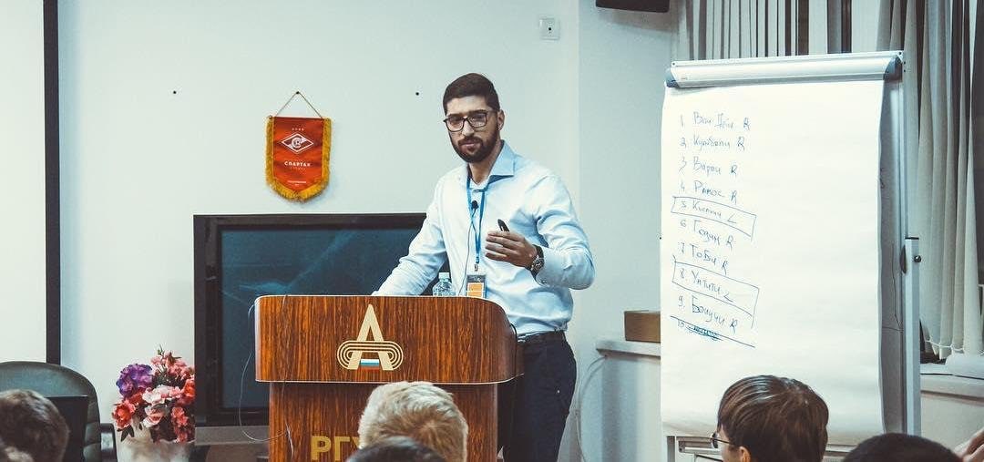 Мотивационные речи (формата "мы здесь прокачаем ваши скиллы" и т.п.), которые толкает программный директор "Футбологики" Армен Маргарян, цепляют лишь поначалу.