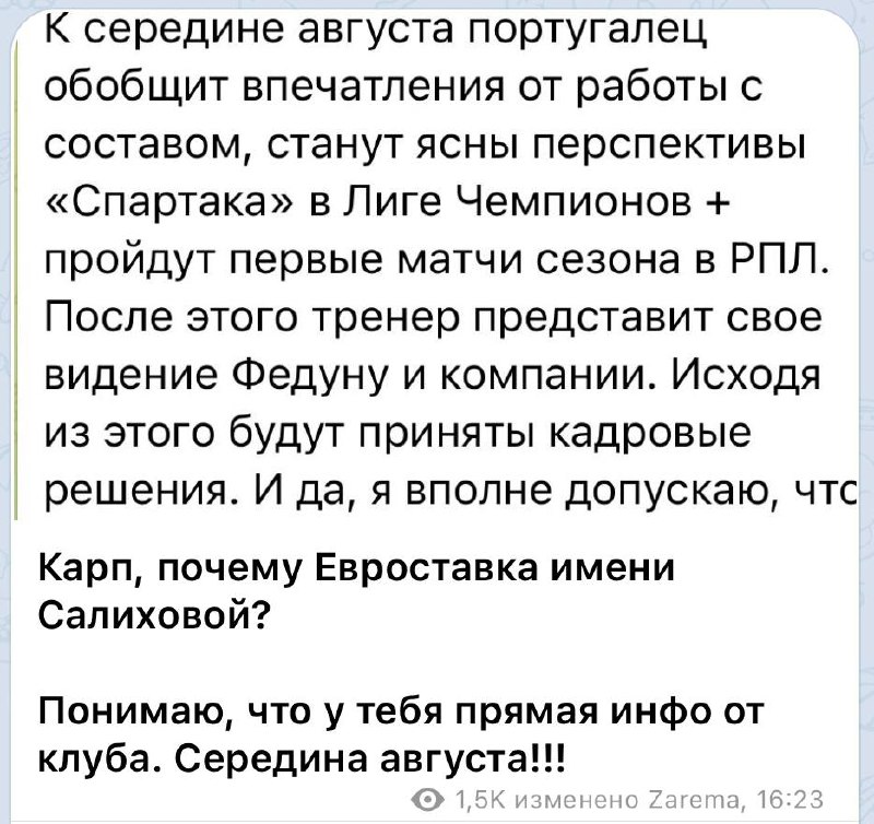 В общем, при таком раскладе единственный логичный варик — это аренда. Думаю, что именно об этом и пишет Макс. Только форму мой друг выбрал — ошибочную. Нет там решения Руя, как и клуба. А вы как считаете, в текущей комплектации «Спартаку» нужен Максим Глушенков или он лишний на этом красно-белом празднике жизни?