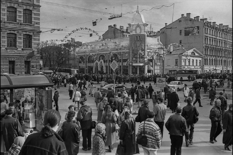 Первый российский «Мак» появился в 1990 году в Москве. Спустя шесть лет ресторан открыли в Петербурге, на Каменноостровском проспекте. А в 1997-м губернатор города Владимир Яковлев перерезал красную ленту на открытии общепита у станции метро «Василеостровская» — первом местном McDonald’s, для которого специально спроектировали целое здание. Для василеостровцев это тоже часть истории района, потому и поделюсь выдержками.