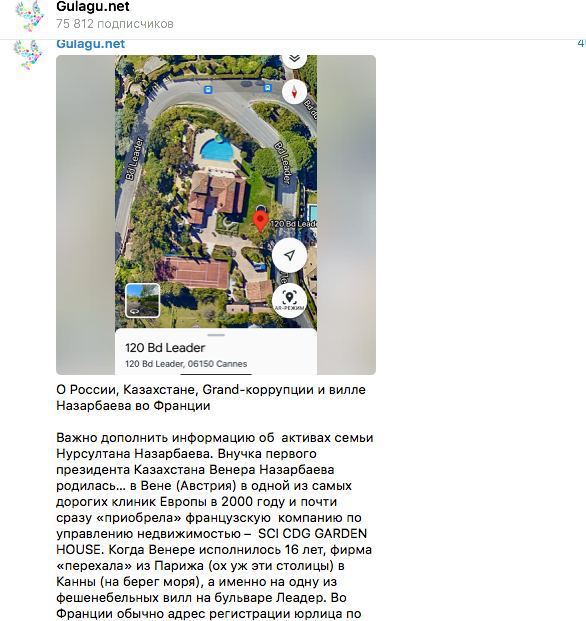 Извините, обычно мы не подвергаем публичному остракизму тех, кто ворует у нас посты, и смотрим на такое сквозь пальцы, но тут особый случай: отличилась правозащитная организация Gulag.net , укравшая наш пост о вилле внучки Назарбаева. Как нам кажется, несколько странно разоблачать коррупцию путем воровства контента, ну да ладно, пусть будет на вашей совести, но остается вопрос: чем вы лучше жуликов? https://news.1rj.ru/str/NetGulagu/1746