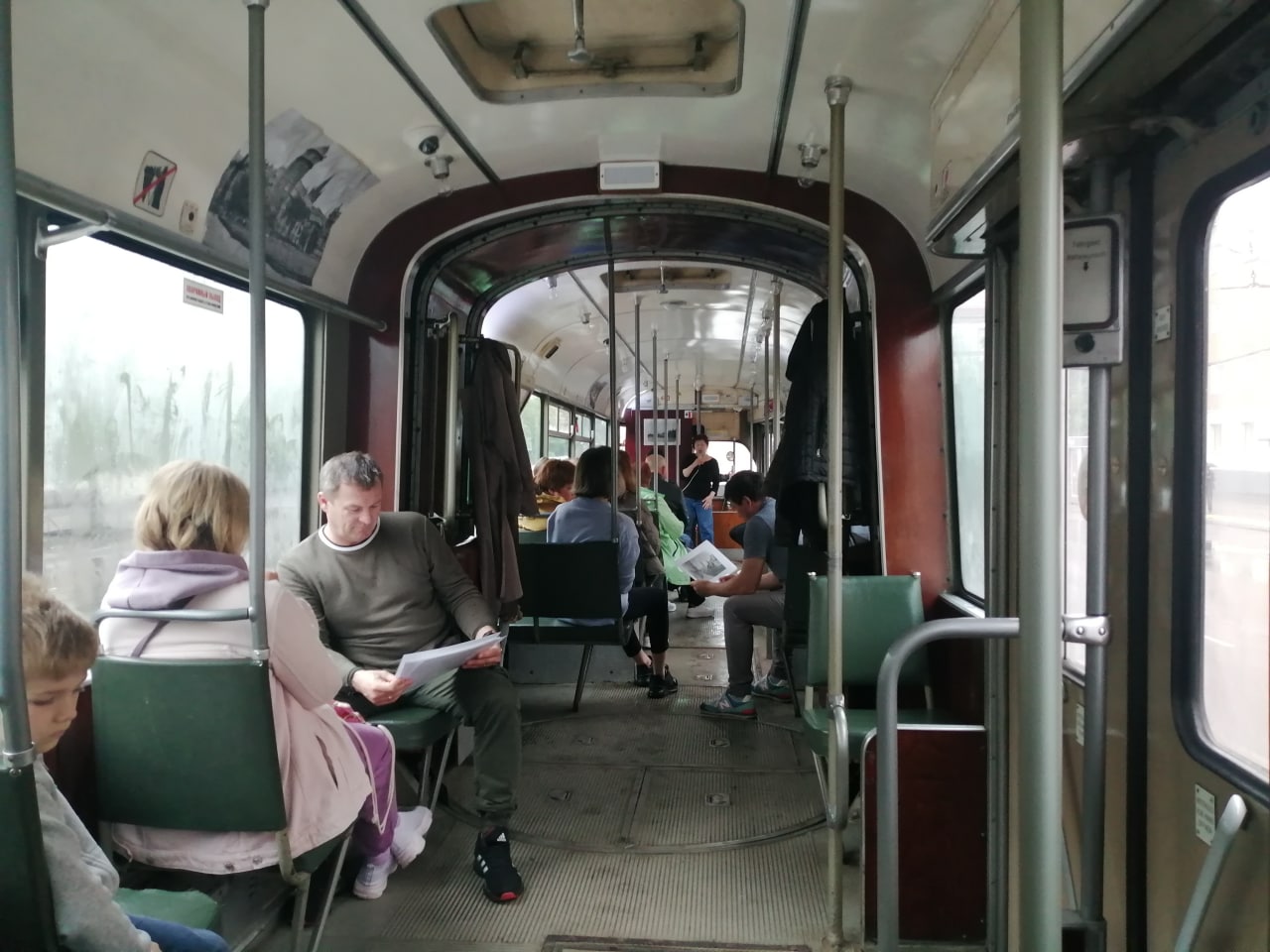 Минусы: детям будет скучно, пожилым людям - тяжело сидеть на жестких трамвайных сиденьях, внутри трамвай не такой интересный, как снаружи. Главный минус - недостаточно громкий звук. Через шум движущегося трамвая плохо слышно экскурсовода.