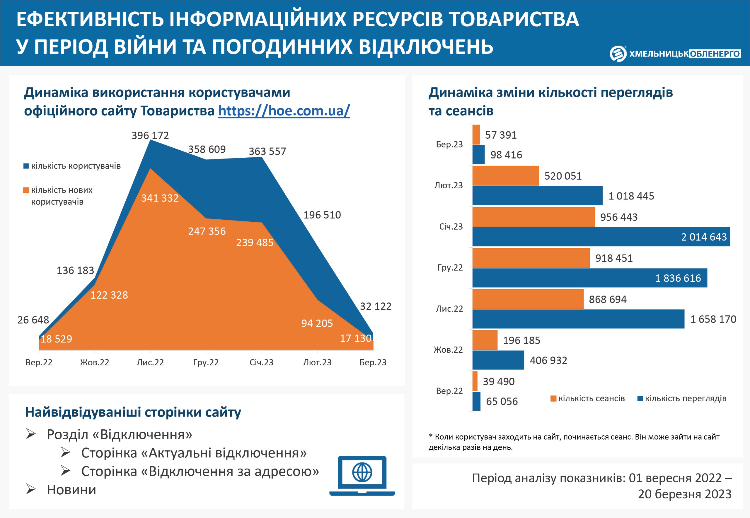 📣 Ділимося інформацією про ефективність інформаційних ресурсів Товариства, які допомагали споживачам дізнаватися про погодинні відключення, графіки та обмеження.