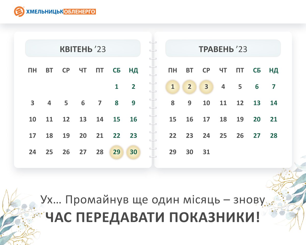 ❗Шановні споживачі, нагадуємо: показники за квітень потрібно передати з 29 квітня до 3 травня включно. Не звертайте увагу на вихідні дні, наші онлайн сервіси працюють цілодобово.