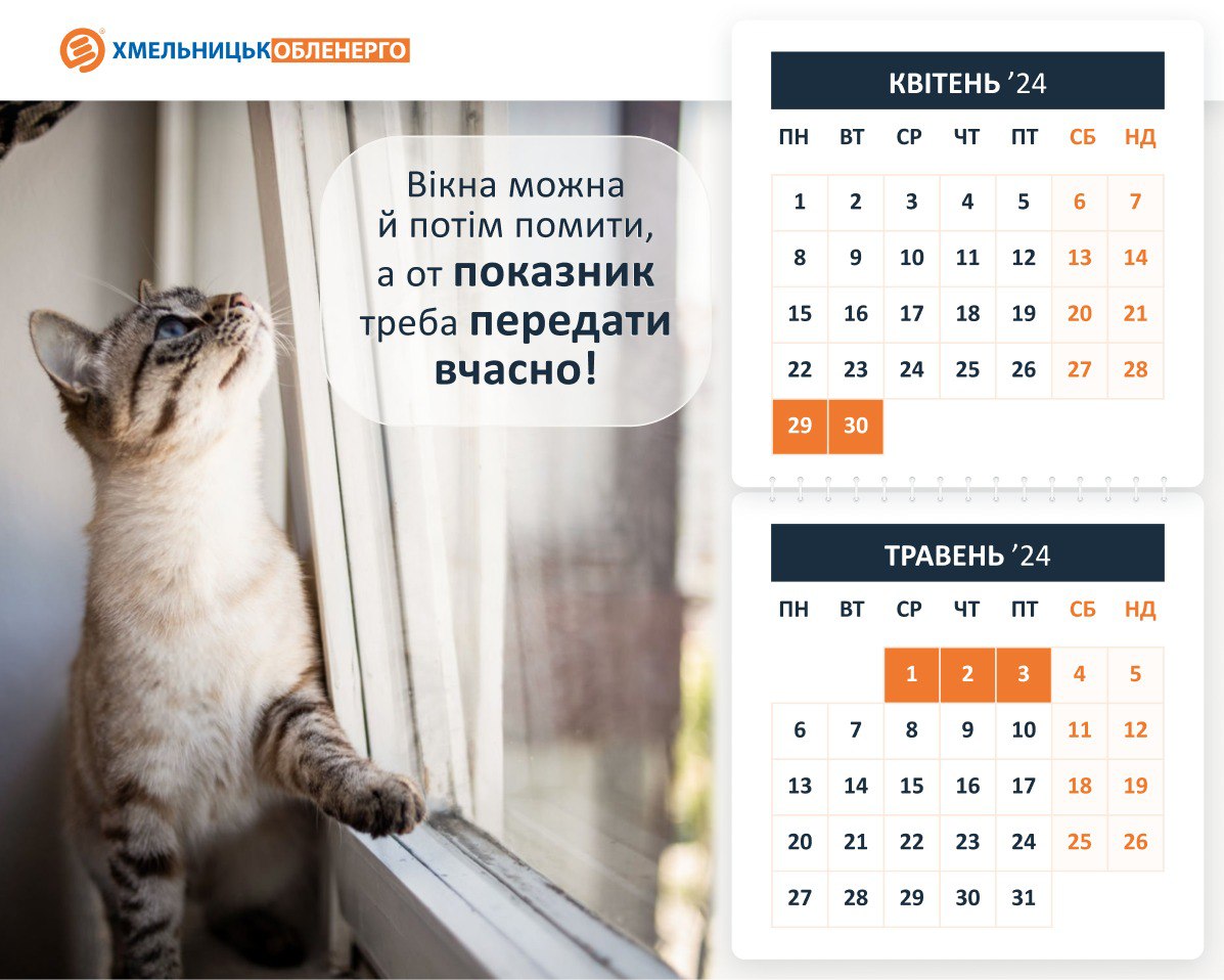 Котики радять відкласти миття вікон та вчасно передати покази лічильників)