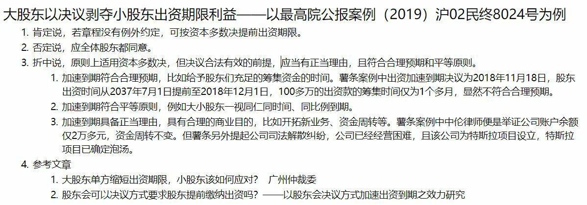本周法律学习群里立的FLAG——学习群友薯条律师主办的最高法院公报案例,控股股东能否以资本多数决形式通过决议,缩短小股东们的出资期限?
