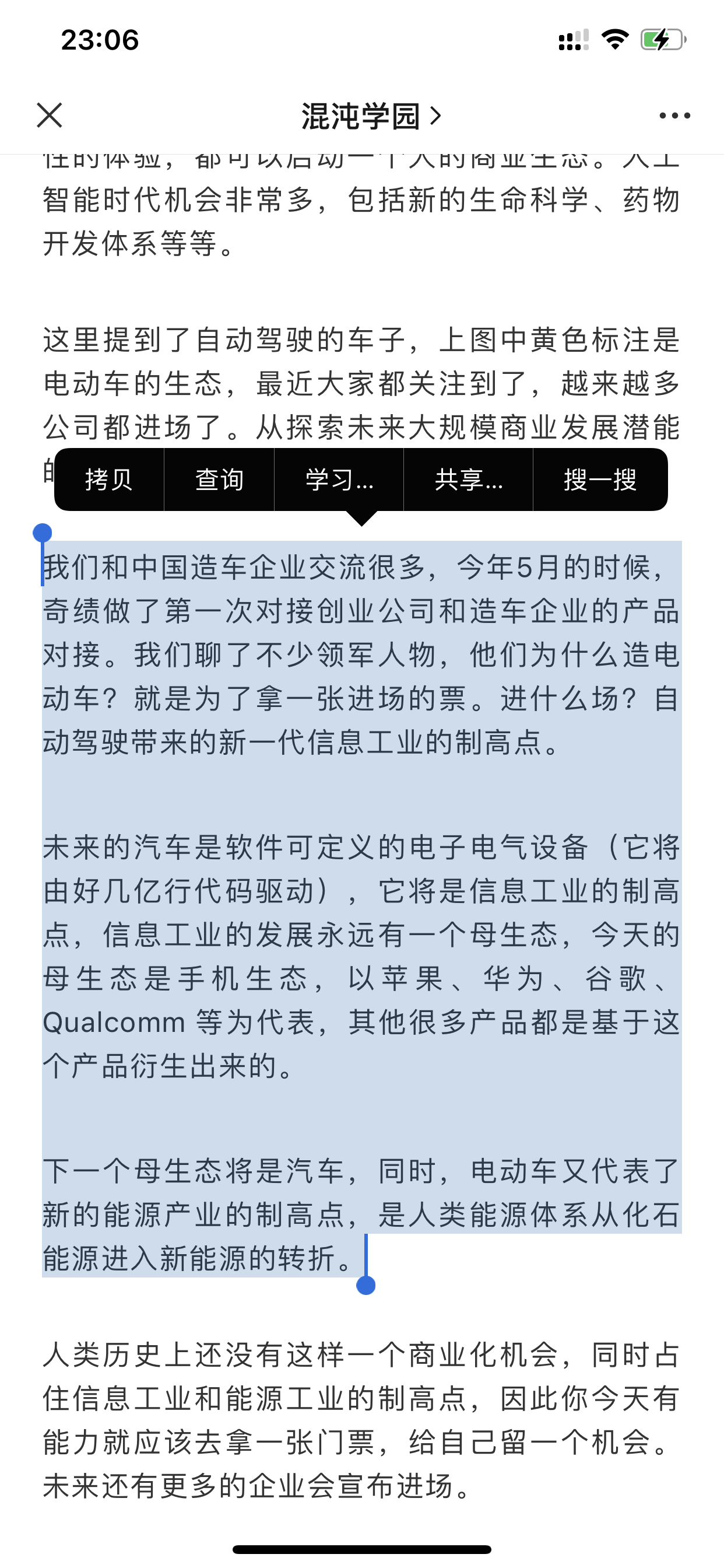 陆奇这个观点还蛮触动我的,汽车如果是下一个母生态,更多企业为了拿到入场券,只能先入场后发展,能不能壮大是一回事,有没有入场券是另一回事。