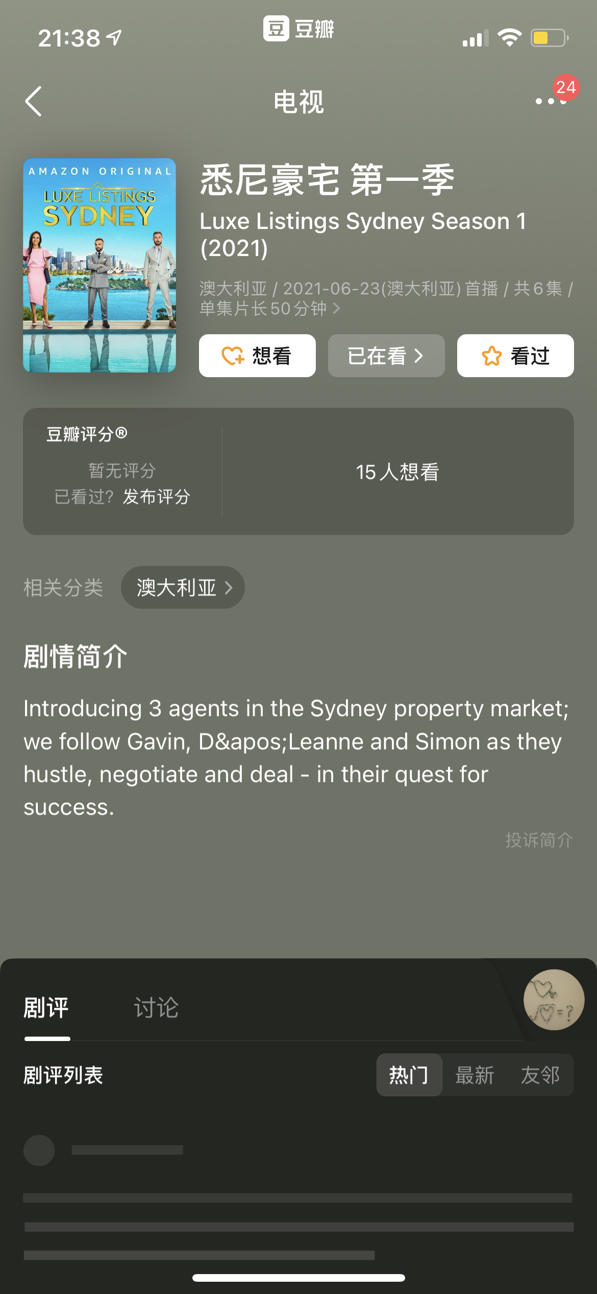 找到一个减压和娱乐的好方法:看豪宅视频。好像这个悉尼豪宅的节目,剧情无聊就是讲中介怎么卖房的,风景看的也是心旷神怡