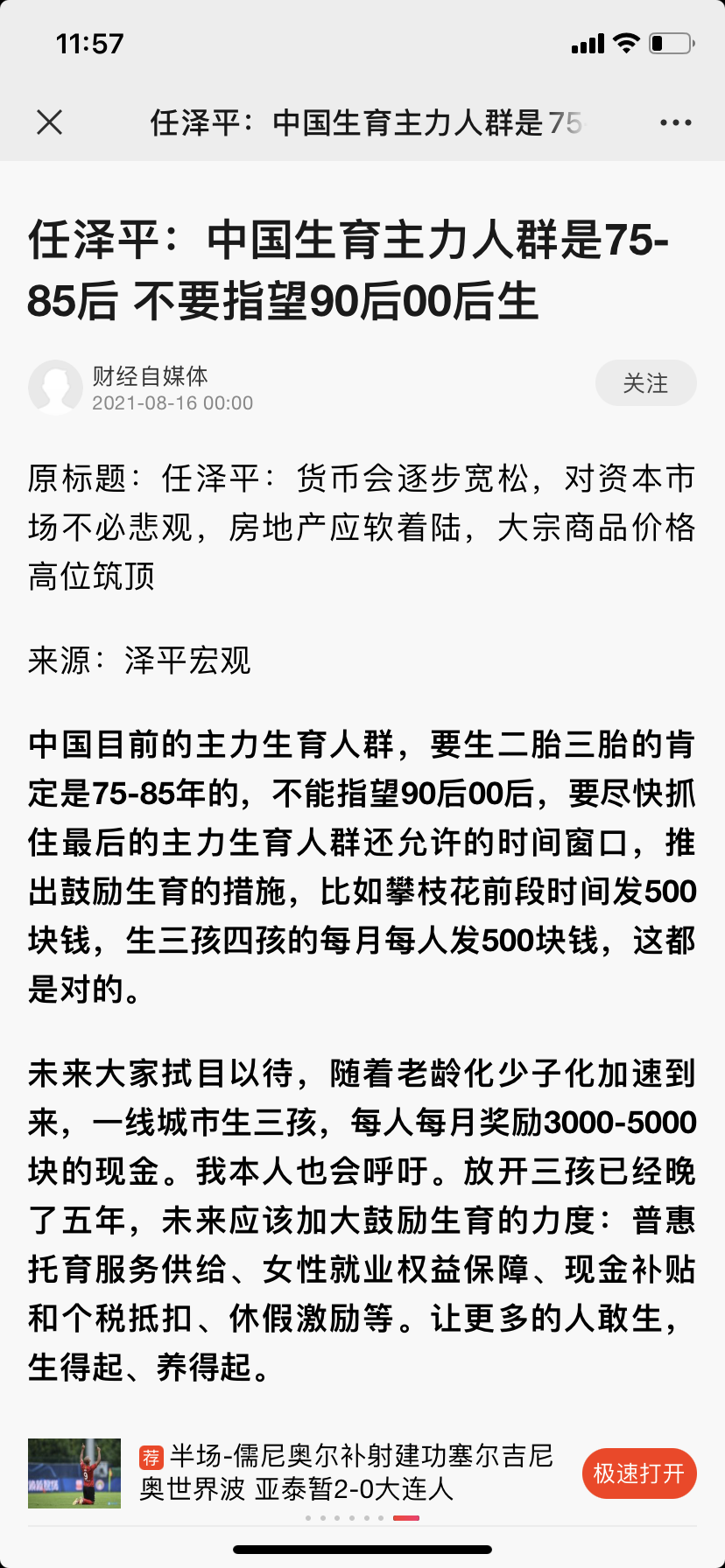 任泽平:中国生育主力人群是75-85后 不要指望90后00后生。