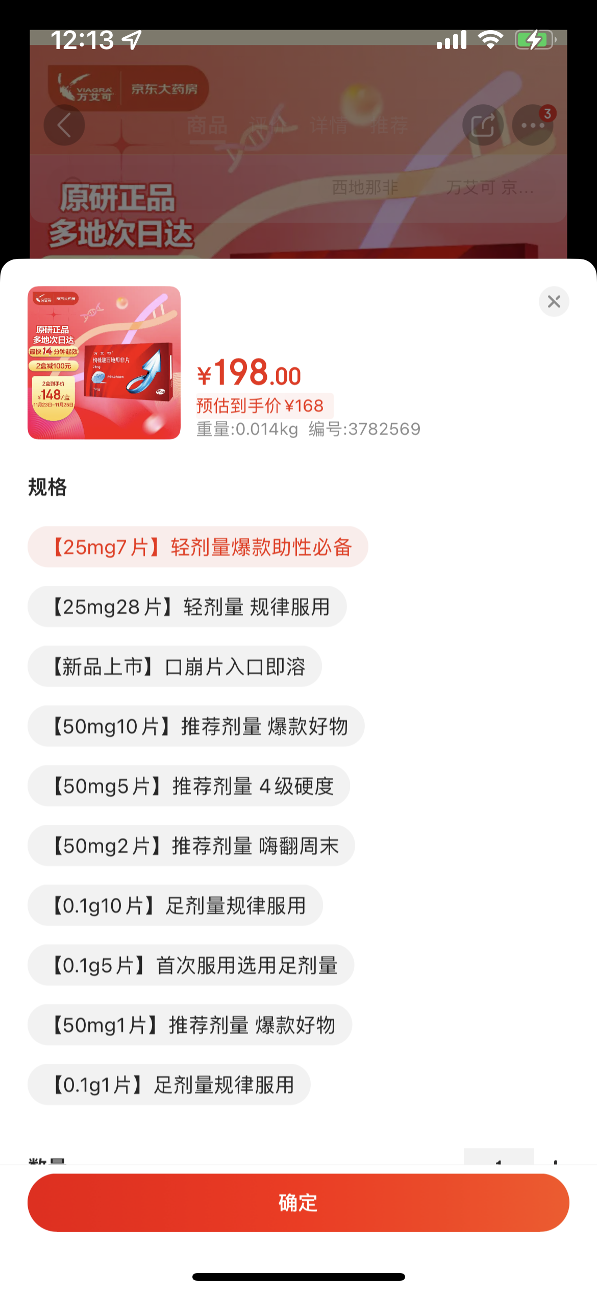 万艾可,也就是伟哥,区分三种规格,满足不同类型用户,不同场景的需求:25mg,50mg,100mg。