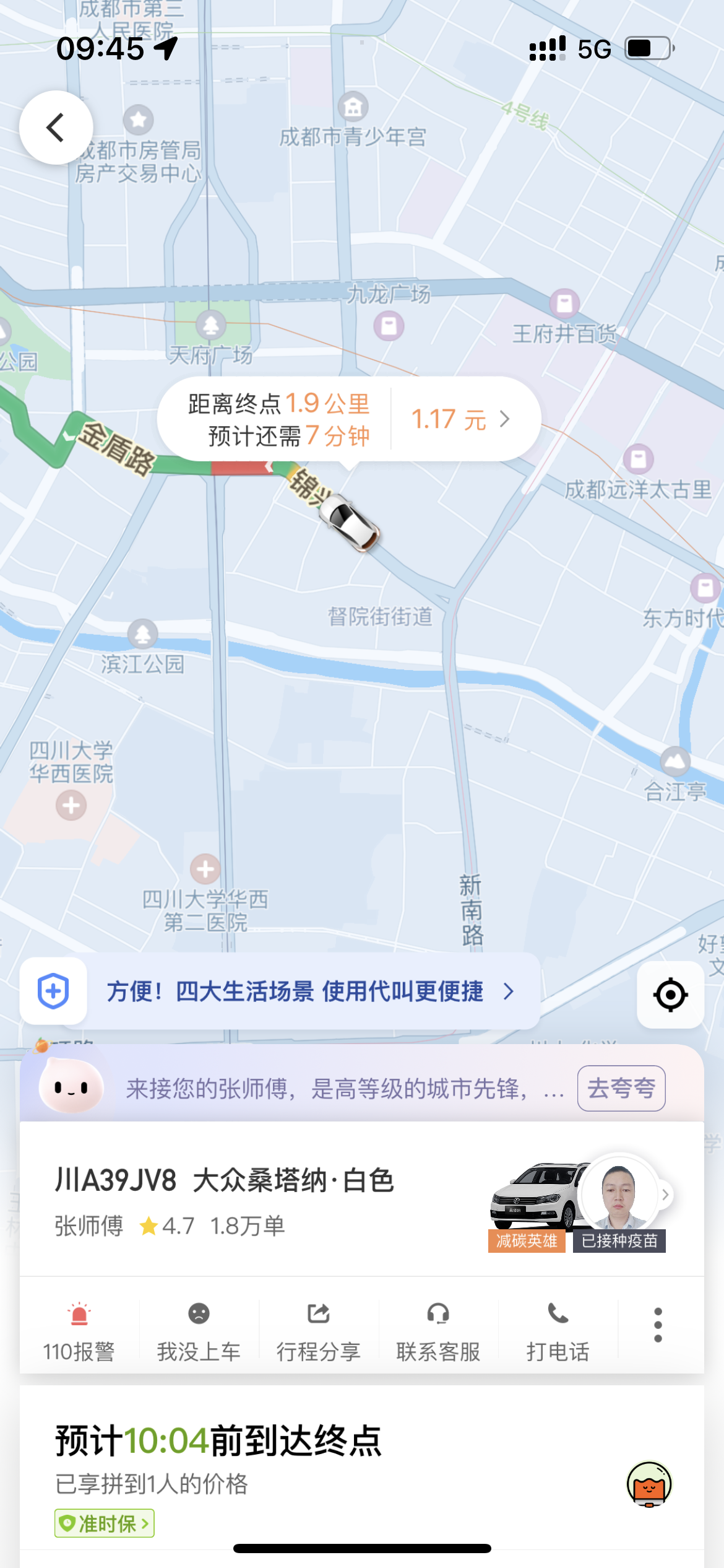周五,今天朋友提醒我。 周五 滴滴拼车1折。 所以, 全程1.2元 😃