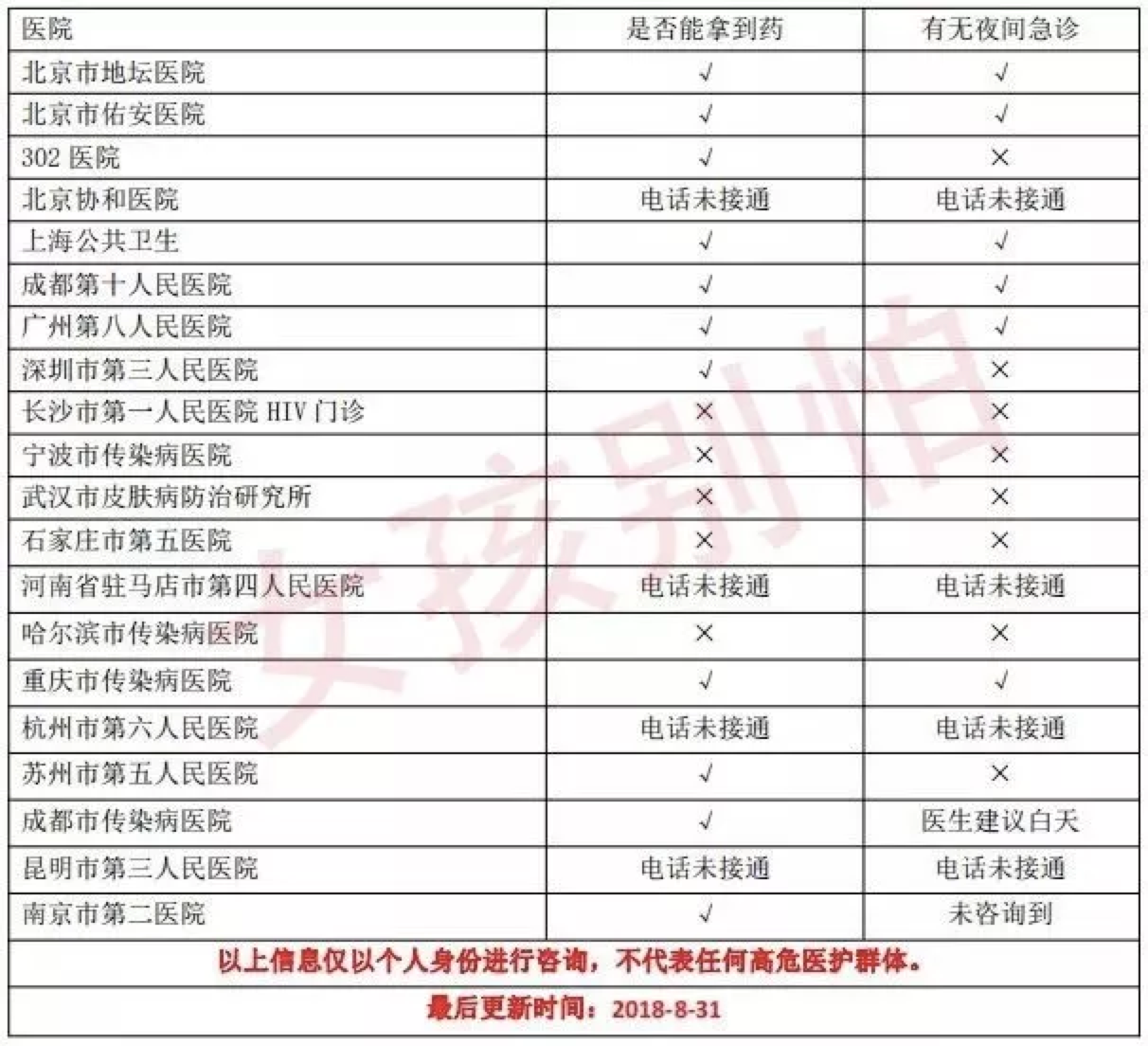 有网友总结过一些有阻断药的医院名单,我之前一一电话确认过,总结成这个表格,希望能帮到大家。(图1)
