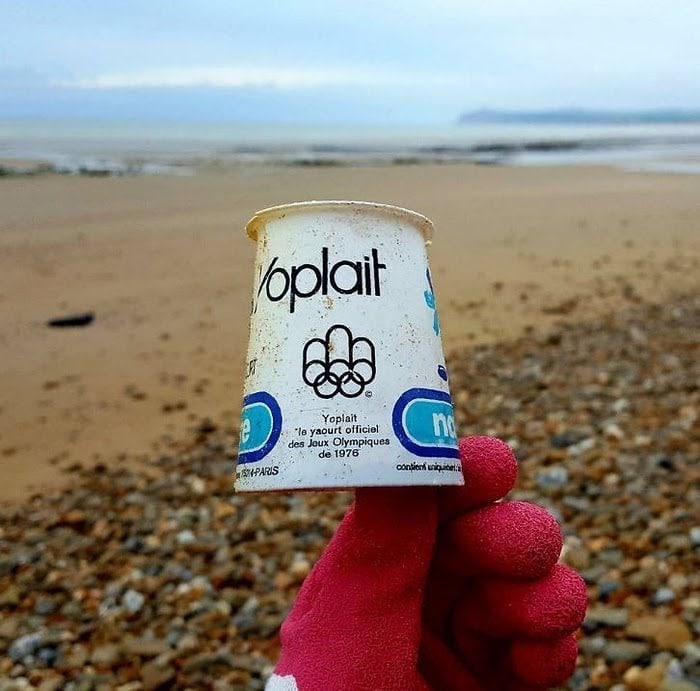 Этот пластиковый стаканчик от йогурта был выброшен в океан в 1976 году в Канаде и найден в 2016 году во Франции. За 40 лет он даже не начал разлагаться!
