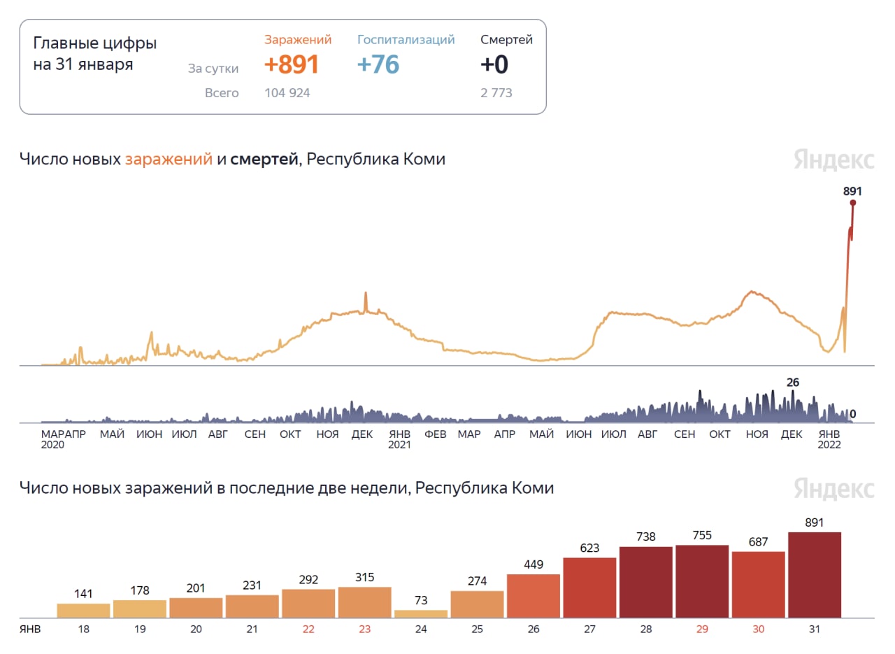 Каждый день количество заболевших растёт, этому уже не стоит удивляться, так как новый штамм вируса очень заразителен. Таким образом можно больше не призывать вакцинироваться, вирус сейчас сделает своё дело, и количество антител в Коми вырастет. Сейчас все переболеем и пандемия закончится. Главное вовремя обратиться к врачам, если почувствовали неладное. Из хорошего, сегодня без смертей. Выздоровели 133 человека.